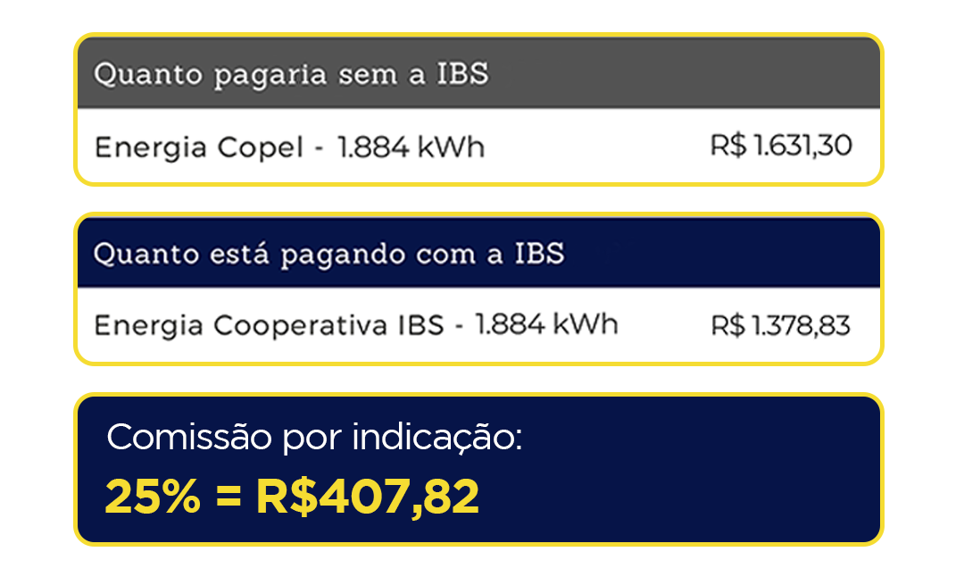 • Você Lucra: Ganhe uma comissão de 25% sobre a média dos últimos 12 meses da tarifa de energia de cada nova adesão que você indicar.
